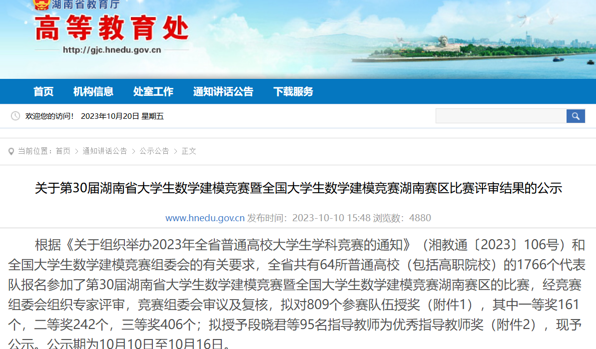 全国老员工数学建模竞赛创办于1992年,每年一届,是首批列入“高校学科竞赛排行榜”的19项竞赛之一。今年湖南省共有64所普通高校的1766个代表队报名参加比赛,公司共派出57支代表队参赛。同时,公司还派出8支代表队参加由湖南省教育厅主办,吉首大学承办的第八届研究生数学建模竞赛。