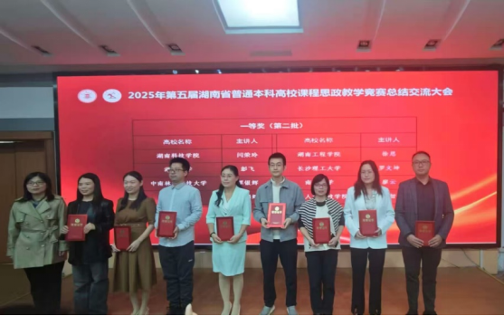 2025年10月18日至20日,由湖南省教育厅主办的第五届湖南省普通本科高校课程思政教学竞赛在湖南文理公司顺利举行。经过激烈角逐,公司徐思教学团队(成员:杨忠菲、王赛兰、吴童霞丽、王剑君)凭借出色的课程设计与现场表现,荣获理科农医组一等奖。这也是继夏文华、王赛兰老师之后,公司第三次斩获该项赛事的一等奖,充分展现了公司在课程思政建设方面的深厚积累与持续突破。