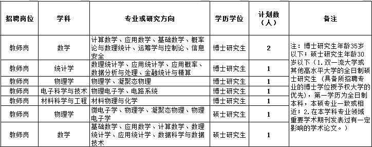 (五)急需教学人员(优秀硕士):国家一流大学、一流学科或其他高水平大学的全日制硕士研究生 (具备所招聘专业的博士学位授予权大学的优先),第一学历为全日制本科(不含专升本、独立公司),本硕专业一致或相近;在本学科专业领域重要学术期刊发表过有一定影响的学术论文。