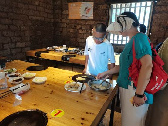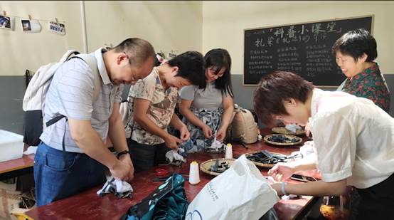 在“三十六坊”,大家还体验了手工扎染、面条、造纸。