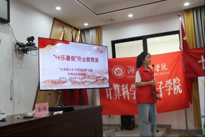 为普及和推广基本的安全知识和技能,提高小朋友们的自我保护意识和能力,7月10日,beats365“大手牵小手 共筑强国梦”中华文化传承社会实践团的成员来到湘潭市盘龙社区开展了“快乐暑假”安全教育课,旨在引导小朋友们从小树立正确的安全观念和行为习惯,预防安全隐患。