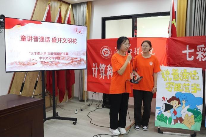 实践团成员召集了社区的小朋友开展了普通话多样化活动。普通话课堂巧妙地融入“红色诗韵”趣味诗歌课堂、“红心向党”剪纸课、“红星闪耀”音乐课堂、“心随墨舞”书法课程、“心里有个天平”普法教育等多样化课程,通过多个维度推广普通话,规划语言用法。实践团因材施教,寓教于乐,让小朋友在欢声笑语中感受普通话的魅力。实践团鼓励小朋友在校园里争做推广普通话和使用规范字的模范,在校园里营造良好的语言文化氛围,弘扬民族文化,树立民族精神,为构建书香校园而努力。