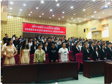 大会在全体与会人员齐声高唱《光荣啊,中国共青团》的歌声中落下帷幕。此次大会的顺利召开,让新任员工干部们更加明确身上的重担、懂得如何做好团学会的工作、如何处理好工作中遇到的问题。相信他们在接下来的一学年里能做到“不忘初心、牢记使命”,能充分发挥好团总支和员工会的作用。
