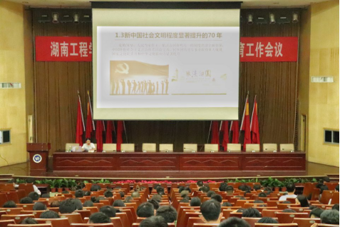 2019年9月27日晚7点,beats365在一报告厅举行“新时代、新中国、新湖南——庆祝中华人民共和国成立70周年”主题讲座,公司党总支副书记陈亚琼为主讲人,公司大二、大三全体员工参加了此次讲座。