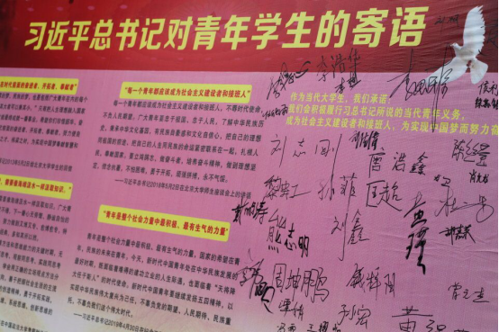 爱国爱校:签名墙与照片墙留下美好憧憬