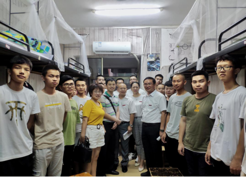 9月15日晚,公司经理邓永和、党总支书记颜卫人、副经理杨继明、副经理陈桥以及党总支副书记陈亚琼、学办主任张利芝等老师走进新生宿舍,亲切看望刚刚入学报到的2019级新生,给同学们送去问候与关心。