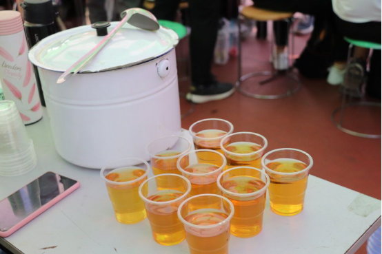 (志愿者们为新生及家长准备的凉茶)