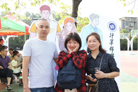(新生和家长在照片墙前合影留念)