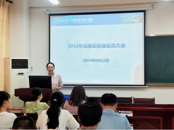 (陈亚琼给2019年迎新志愿者召开动员大会)