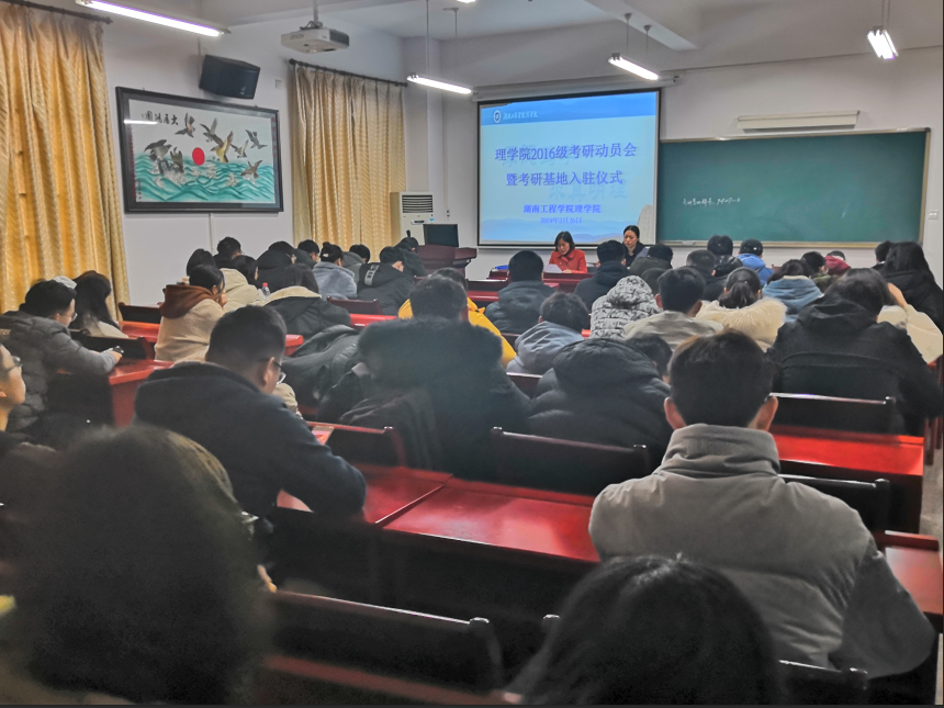 2月26日中午,理公司于教学楼主楼F205开展了2016级考研动员大会暨考研基地入驻仪式。此次会议由辅导员蒋淑亚主持,理公司党总支副书记陈亚琼及2016级考研的同学参加了此次活动。