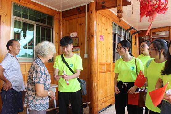 图为实践团成员向村民进行红色文化知识调研。中国青年网通讯员 任格仪 摄