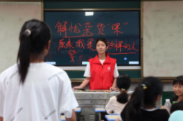 保障青少年儿童健康成长最首要就是不断加强对青少年儿童的安全教育工作。为增强青少年的安全知识教育和提高自我防范的意识,在课堂上,实践团成员开展了“妙绘中华 筑梦童心”主题绘画课、“防电信诈骗”主题宣讲、“垃圾分类”演示、“消防安全”情景剧、“防溺水”安全教育主题课、“未成年人保护法”知识宣讲等主题活动,新奇的体验让孩子们惊奇不已,现场气氛热烈高涨。“我们很喜欢哥哥姐姐给我们上课,他们就像我们的爸爸妈妈一样,能够教我们很多安全知识。”中路铺中学员工黄晨曦