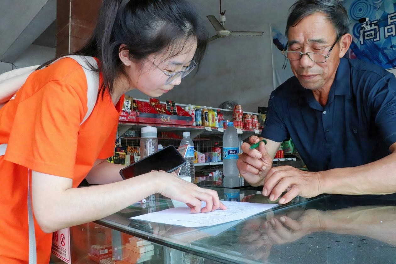 图为实践团成员入户进行有关“数字乡村”的发展情况的调研 李韩辉 摄