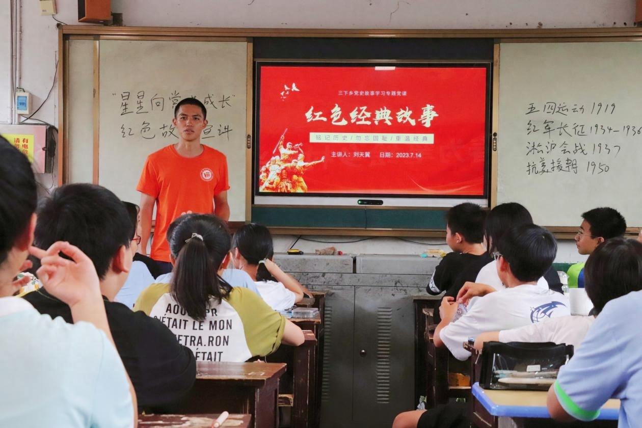 图为实践团成员跟同学们进行红色故事分享会。李韩辉 摄