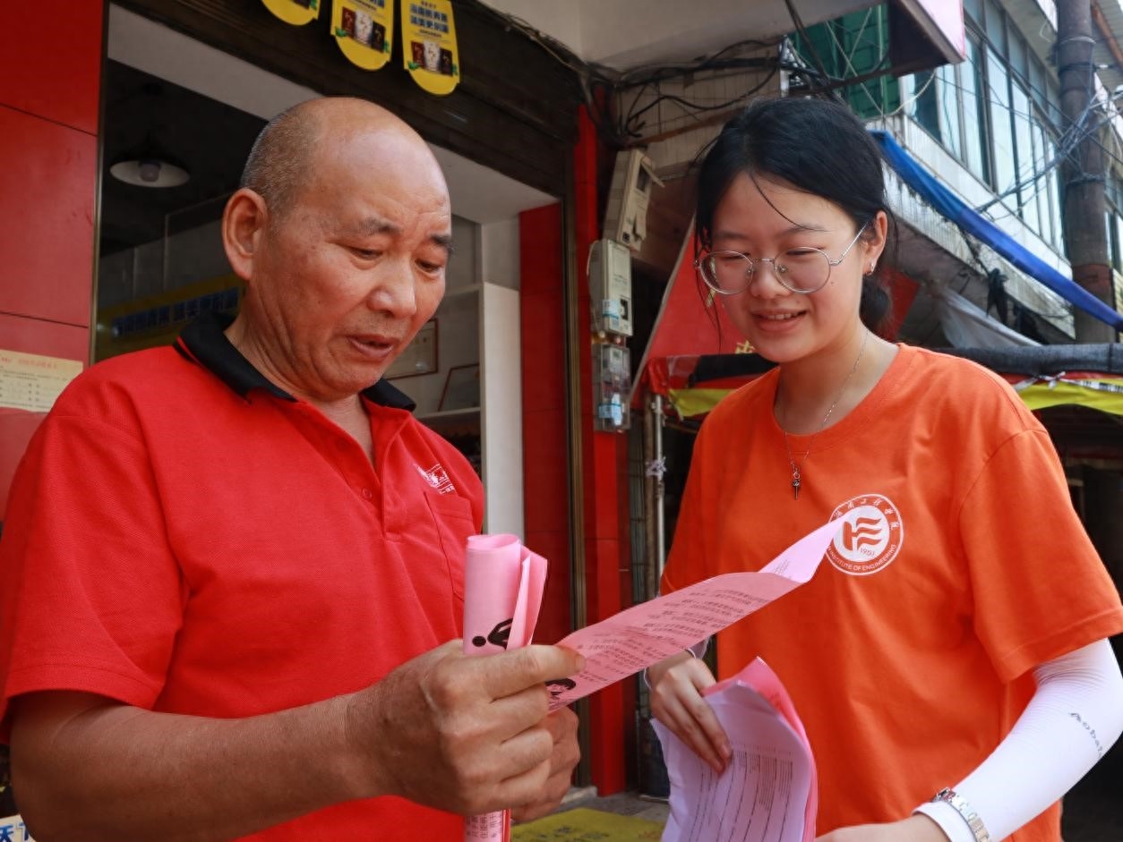 图为实践团成员对当地居民进行普通话宣传。龚艳星 摄