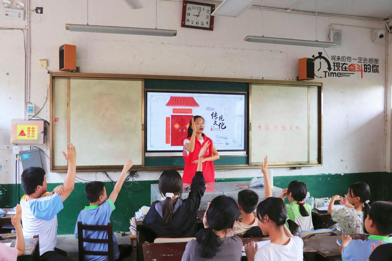 图为实践团成员上“四海同音 系华夏情”推普小课堂。龚艳星 摄