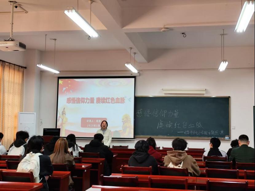 为深入学习贯彻党的二十届三中全会精神,引导青年学子坚定理想信念,传承红色基因,5月3日下午,beats365在新校区F205开展“感悟信仰力量 赓续红色血脉”主题团课。公司团总支书记杨俐担任主讲,2024级80余名新生齐聚一堂,共同接受红色精神的洗礼与淬炼。