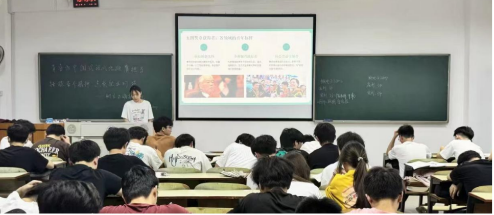 宣讲过程中,胡伊婷紧扣“青春与中国式现代化”的关联,围绕新时代青年的使命责任展开分享。她结合当下社会经济发展现状,深入阐释现代就业观的转变特点,剖析就业市场变化对青年职业规划的影响,鼓励同学们将个人职业发展与国家战略需求相结合,以专业所长赋能中国式现代化建设。课堂上,同学们认真聆听、积极思考,现场学习氛围浓厚。在互动讨论环节,大家结合自身专业知识踊跃发言,分享对未来职业发展的见解,围绕如何适应就业市场变化、以青春力量助力中国式现代化建设等话题展开热烈交流,展现出青年学子勤于思考、勇于担当的良好风貌。