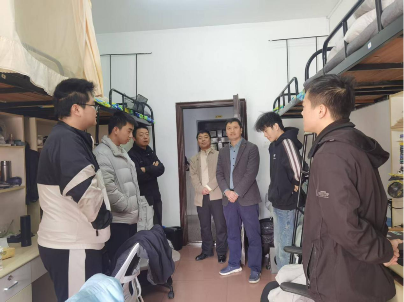 走访过程中,领导班子一行坚持“安全第一、预防为主”的原则,对宿舍内消防安全、用电安全等情况进行排查。重点检查了宿舍内违规电器使用、私拉乱接电线等关键环节,对排查中发现的隐患问题现场提出整改意见,同时叮嘱同学们要提高安全防范意识,自觉遵守宿舍管理规定,共同维护整洁、安全、文明的住宿环境,筑牢校园安全“防火墙”。