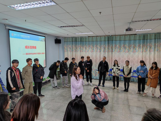 活动在充满欢乐的氛围中拉开序幕,轻松有趣的“破冰之旅——无家可归”和增进彼此了解的“和我一样”热身活动,打破了团体成员的拘谨,开始轻松进入活动。本次团辅主题为成长变奏曲,通过“小鸡变凤凰”的现场体验成长的过程。活动过程中,每位成员都积极参与,全身心投入。现场时不时响起一阵阵欢快的笑声。每个环节,陈亚琼都会请大家分享活动的感受与收获,引导同学们更加清楚的认识到团队的力量以及成长的过程中的痛苦和快乐。团总支员工会组织部部长肖大龙同学在分享自己的游戏感受时,表示自己加深了对伙伴们的了解,同时也享受了这个游戏过程,慢慢领悟到成长过程中的意义。