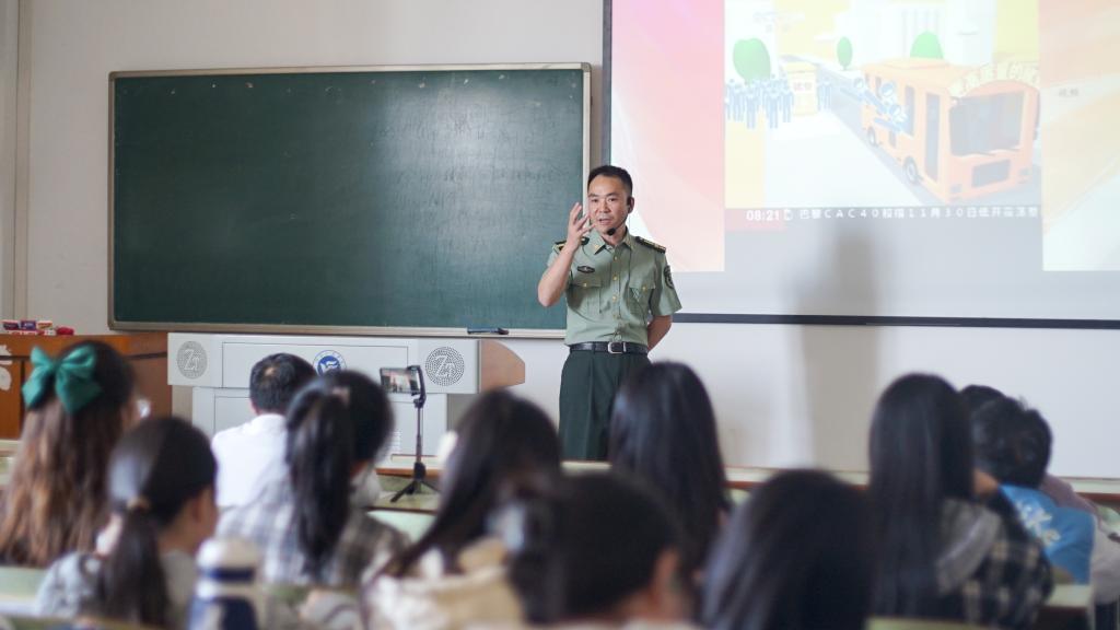 最后他鼓励在座即将毕业的同学们携笔从戎,把个人的理想抱负融入国防事业,踊跃应征入伍,到部队中成长、锻炼、磨砺自身,为强军梦、中国梦贡献青春力量。