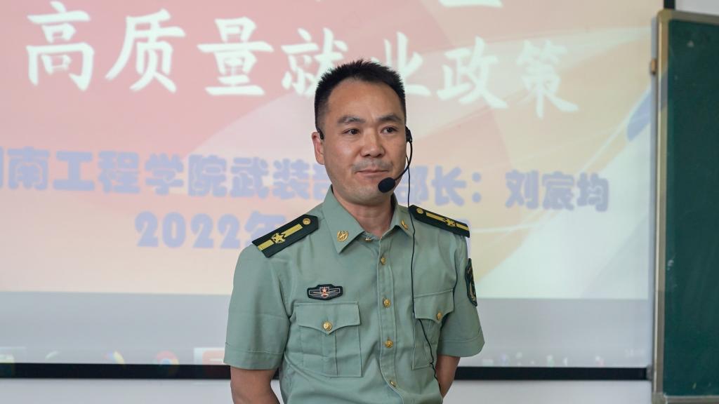 刘宸均向同学们展示了当前我国航天科技、军事技术和国防力量等方面的突出成就。随后,引入老员工高质量就业是什么,与我有什么关系,我要如何实现呢?”“人生的价值到底是什么,我要如何去体现?”“我到底能给国家和社会做些什么?三个问题,让同学们带着问题边听边思考。他向同学们讲述了当代优秀老员工入伍以后在部队的发展情况,并着重介绍了公司入伍毕业生的优秀事迹,在讲解优秀事迹的过程中,穿插着国家对大学毕业生入伍的政策,引人入胜,让同学们有了深刻的印象。