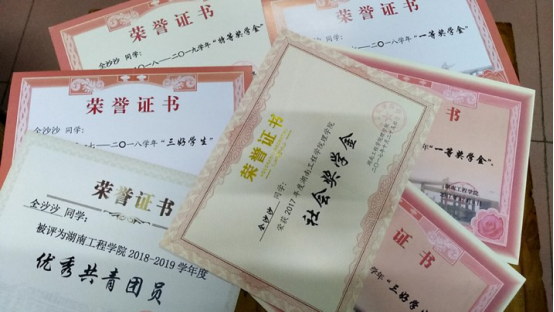 (全沙沙在校获得的奖学金等荣誉证书)