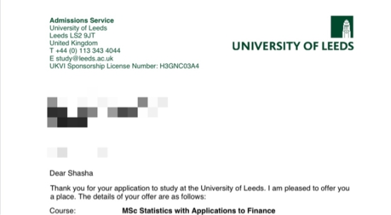 (英国利兹大学OFFER)