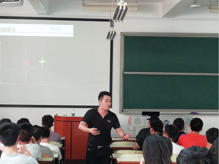 6月20日下午,理公司在主教学楼D402开展了职业生涯规划讲座,理公司经理邓永和、副经理杨继明、辅导员蒋淑亚出席了本次讲座。此次讲座由校企合作的企业方——中软国际相关负责人主讲,信科及统计专业2016级全体员工到会聆听。