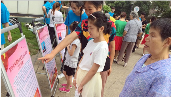 在每个社区宣讲现场,都能看见志愿者们设立的“流动党史馆”宣传长廊。在东方红广场,居民围绕在展板面前了解红色故事,及习近平新时代中国特色社会主义思想的有关内容,现场居民纷纷为志愿者豪情壮志的宣讲热烈鼓掌。在桥湾社区,志愿者们热心给居民和孩子讲解“流动党史馆”中的内容;在宝塔社区,志愿者们组织社区居民及青少年举办了“我和我的祖国”演讲比赛;在盘龙社区,志愿者们给社区青少年举办了“红色故事”演讲比赛,在社区设置了“物理小实验”、“红色故事馆”、“庆祝祖国70周年”祝福墙以及“红色知识”抢答比赛等环节。