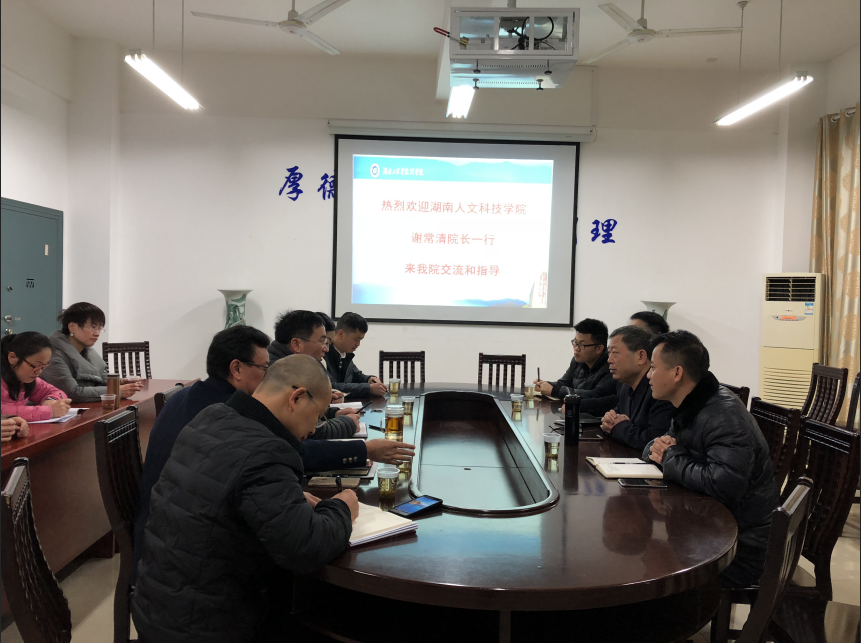 12月7日上湖南人文科技公司能源与机械工程公司谢常清经理一行13人来公司考察交流,理公司经理邓永和、党总支书记刘洁纯、副经理杨继明、党总支副书记陈亚琼在理公司G207会议室接待了来宾。理公司物电教研室、大学物理教研室、物理实验中心、院办和学办部分老师参加了会议。