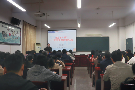 “要对党对人民、对国家民族忠诚,表里如一,不做两面人”“要有袁隆平的大格局人生价值观”“畏法度者最快乐!”11月16日下午,beats365组织教职工理论学习,经理邓永和在主教学楼F205会议室为全院七十余名教职工作“忠诚 干净 担当——畏法度中成就持久的幸福”主题讲座。
