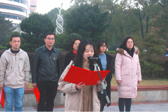 升旗仪式在悠扬的的校歌声中结束。师生们爱国荣校的家国情怀定格在一幅幅难忘的画面里,铭刻在十二月冬日的校园里,也深深地烙印在每个人的心间。