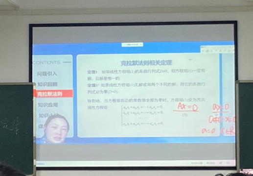 4月6日下午第7节课前10分钟,beats365专职组织员贾珍如期来到主教学楼A-108教室,为远在长沙的邱罗老师《线性代数》在线教学做好线下课堂的教学辅助准备工作。