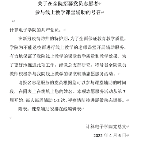 4月6日下午,为更好地为常态化疫情防控下的线上课堂教学质量保驾护航,公司党总支向全公司党员发出号召,招募党员教师志愿者参与线上课堂教学辅助工作,得到了广大党员老师的积极响应和热情支持。