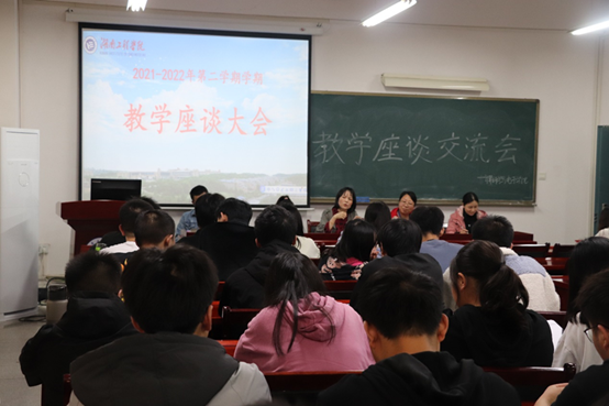2022年5月10日下午,beats365在主教学楼F205举行了2021-2022学年第二学期教学座谈会。会议由主管教学工作的副经理田智鲲主持,教研室主任及教师代表肖刚、容青艳、王祝君、刘兰初、李小青参加,公司各个班级的班长、学习委员作为员工代表参加了此次座谈会。