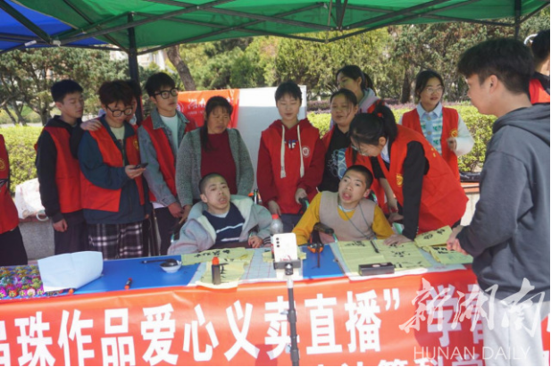 “很想体验一下做网络主播的生活是什么样,我们想通过视频和直播传递传递更多正能量。”两兄弟的妈妈郭利群说,由于身体原因,两兄弟对互联网、电商、直播不了解。为了帮助他们完成这个梦想,雷锋社志愿者师生在公司大力支持下,搭建电商直播平台、注册电商小店、布置场地、爱心义卖、教手工串珠、书法、折纸……初次接触直播的两兄弟紧张得一句话都说不出来,在师生志愿者的鼓励和管理公司营销协会帮助下,两兄弟逐渐进人状态,可以独立地进行直播,销售自己的手工串珠。