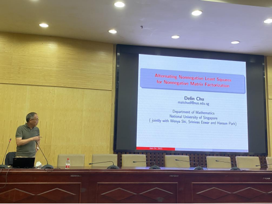 5月23日下午,德国洪堡基金高级研究学者、日本JSPS学者、新加坡国立大学教授储德林应邀为公司师生作题为“Alternating Nonnegative LeastSquares for Nonnegative Matrix Factorization”的学术报告。报告在图书馆二报告厅隆重举行,由beats365数学学科带头人聂存云教授主持。