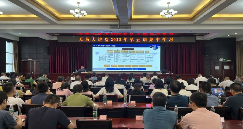 7月28日,邓永和经理出席湘潭县天易大讲堂第五期集中学习并做专题授课,天易经开区党工委委员、管委会副主任楚荣光主持学习。