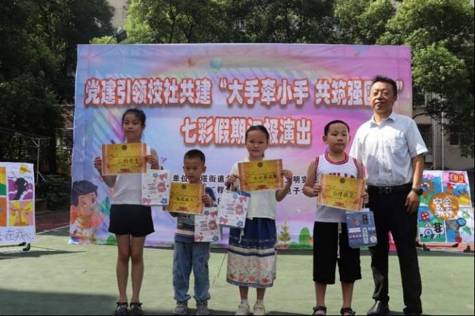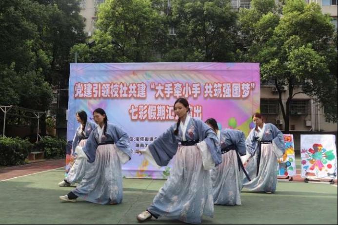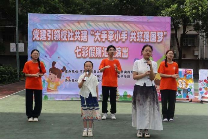 (朱巧玲 杨俐)7月12日上午,beats365“大手牵小手 共筑强国梦”中华文化传承社会实践团联合盘龙社区在社区开展党建引领校社共建“大手牵小手 共筑强国梦”七彩假期汇报演出。