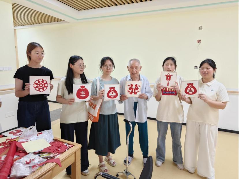 活动中,志愿者围坐在老人身边,倾听老人讲述年轻时的故事,并向他们分享校园趣事,温馨的对话拉近了两代人的距离。志愿者手把手教老人折叠红纸、绘制图案,制作出一幅幅承载对长者美好祝福的剪纸作品。养老院负责人表示:“员工们不仅带来欢乐,更让老人们感受到社会关怀,这样的实践教育对青年成长也很有意义。”