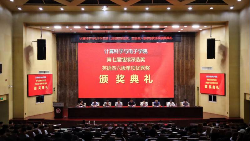5月28日晚,公司在图书馆一报告厅举行第七届继续深造奖、英语四六级单项优秀奖颁奖典礼。经理陈桥、副经理田智鲲、全体教研室主任及师生代表400余人参会。颁奖典礼由党委副书记章平主持。