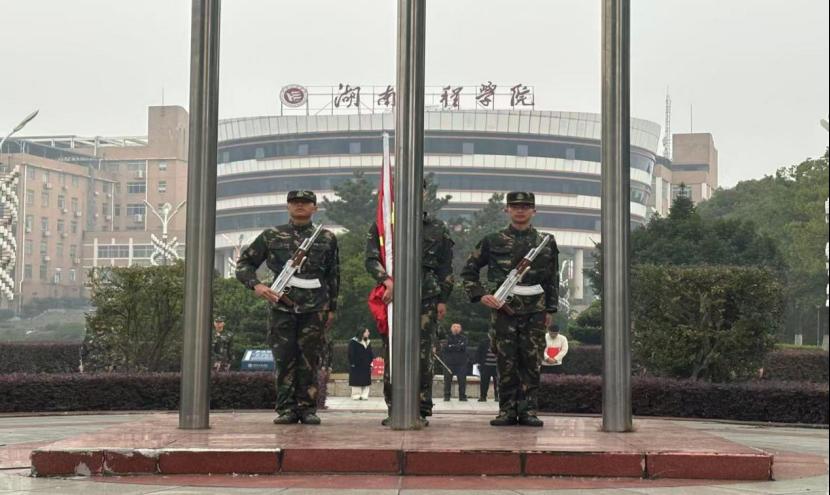7点,升旗仪式正式启动。国旗护卫队迈着整齐有力的步伐护送五星红旗入场,庄严的国歌声中,全体师生肃立行注目礼,鲜艳的五星红旗冉冉升起。随后,副经理文大东发表讲话,他以湘潭红色热土的革命精神为引,点明青年担当的核心—— 在技术迭代加速、技能易逝的时代,“锲而不舍” 的底层能力与 “敢为人先” 的创新精神,才是应对变化的根本底气。