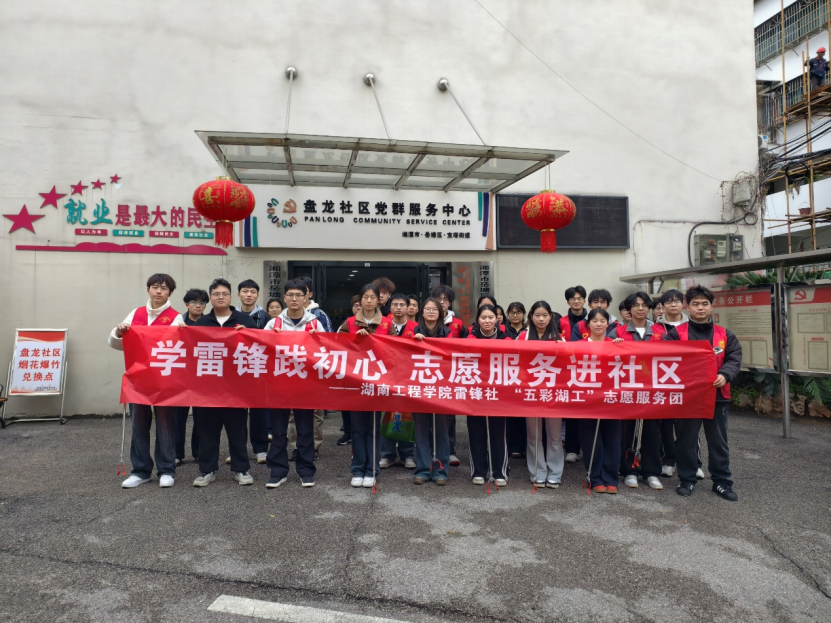 为大力弘扬雷锋精神,深化校社共建合作,3月17日下午,beats365官方网站雷锋社联合“五彩湖工”志愿服务团走进湘潭市盘龙社区,开展以“学雷锋践初心 志愿服务暖社区”为主题的志愿服务活动。志愿者们以多元服务践行志愿精神,用实际行动传递温暖,奏响校社联动的和谐乐章。
