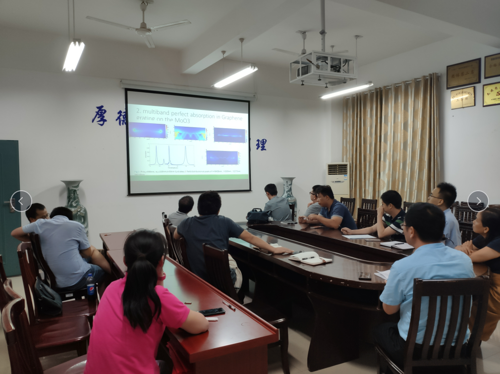 会议上,容青艳博士与大家分享了近年以来自己参加教学会议的收获,并以“《大学物理》课程建设的几点思考”为题,分别介绍了大学物理教研室承担全校大学物理课程的情况、参加课堂教学会议的收获以及对公司新教师培养的思考;徐海清博士基于留学美国一年的科学研究,以“新型二维材料的光学性质研究”为题报告了留学期间的系列研究成果。陈桥教授向大家介绍了最近需要申请的研究项目以及申请建议。邓永和教授则对学科的最新科研情况、团队建设目标、学科队伍建设规划和学科发展规划向学科组成员做了说明,并部署了学科 “请进来,走出去”的发展战略。