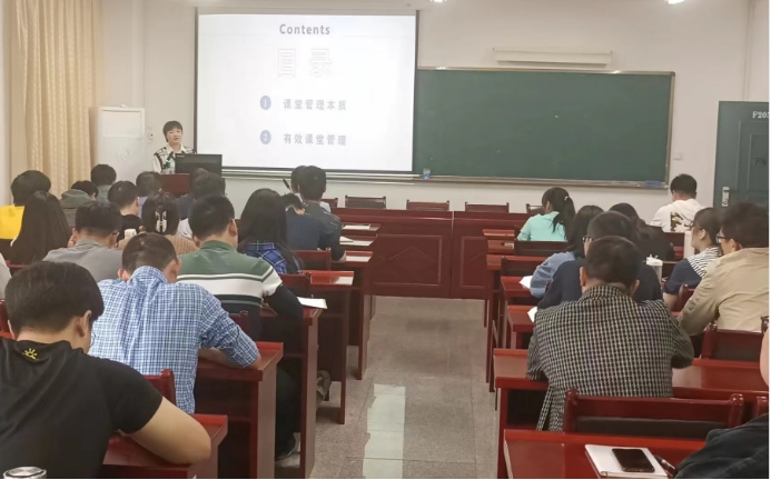 邱罗以“站稳大学讲台--如何进行课堂管理”为主题,结合自己的课堂教学和管理经验,从为什么要学习课堂管理、课堂管理的必要性,课堂管理本质、课堂管理行为三条基本原则、课程组织结构、考核方式、教学中其他细节反思与总结等方面,同与会人员分享了她“树威信、爱感化、养习惯、有幽默”的有效课堂管理心得。